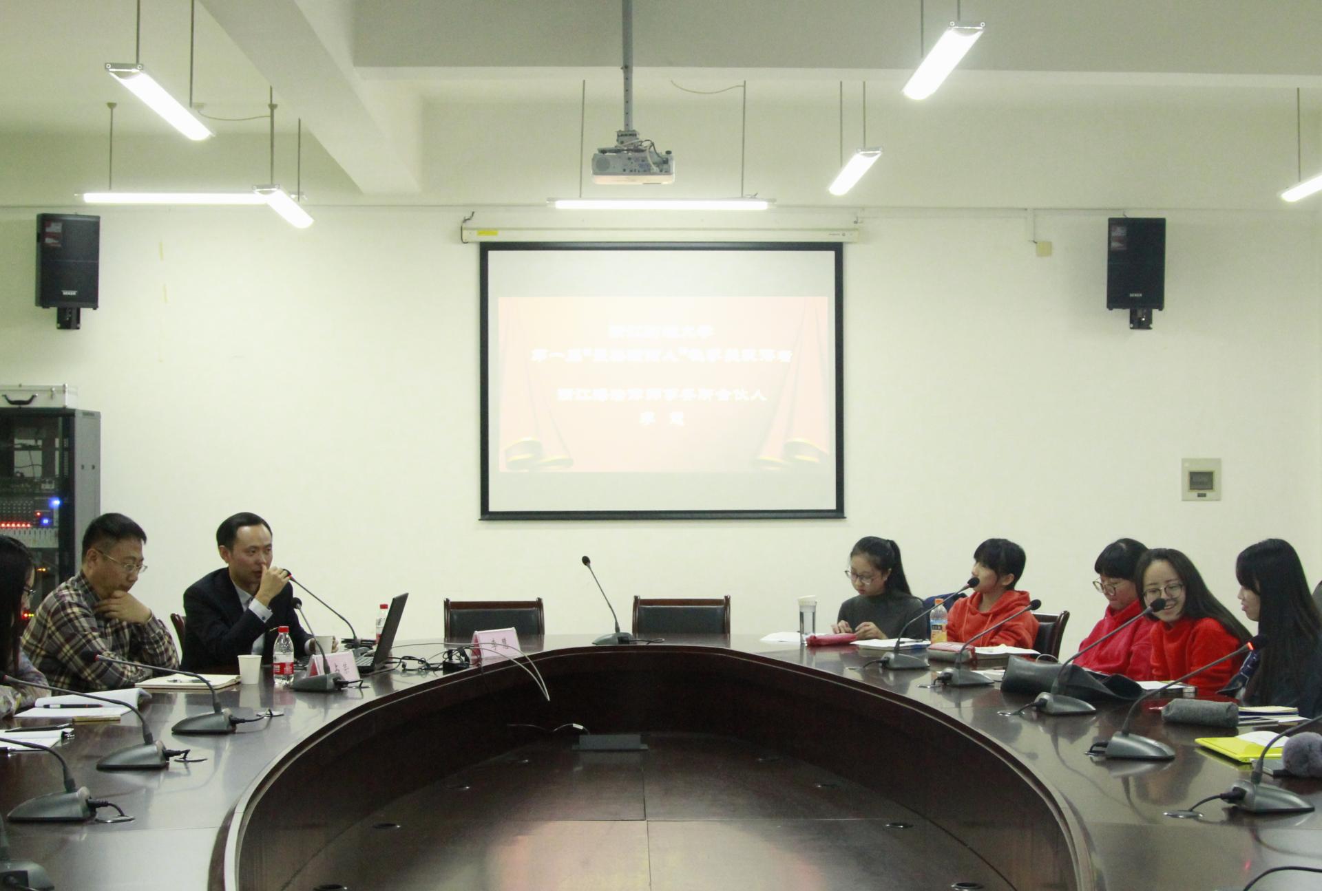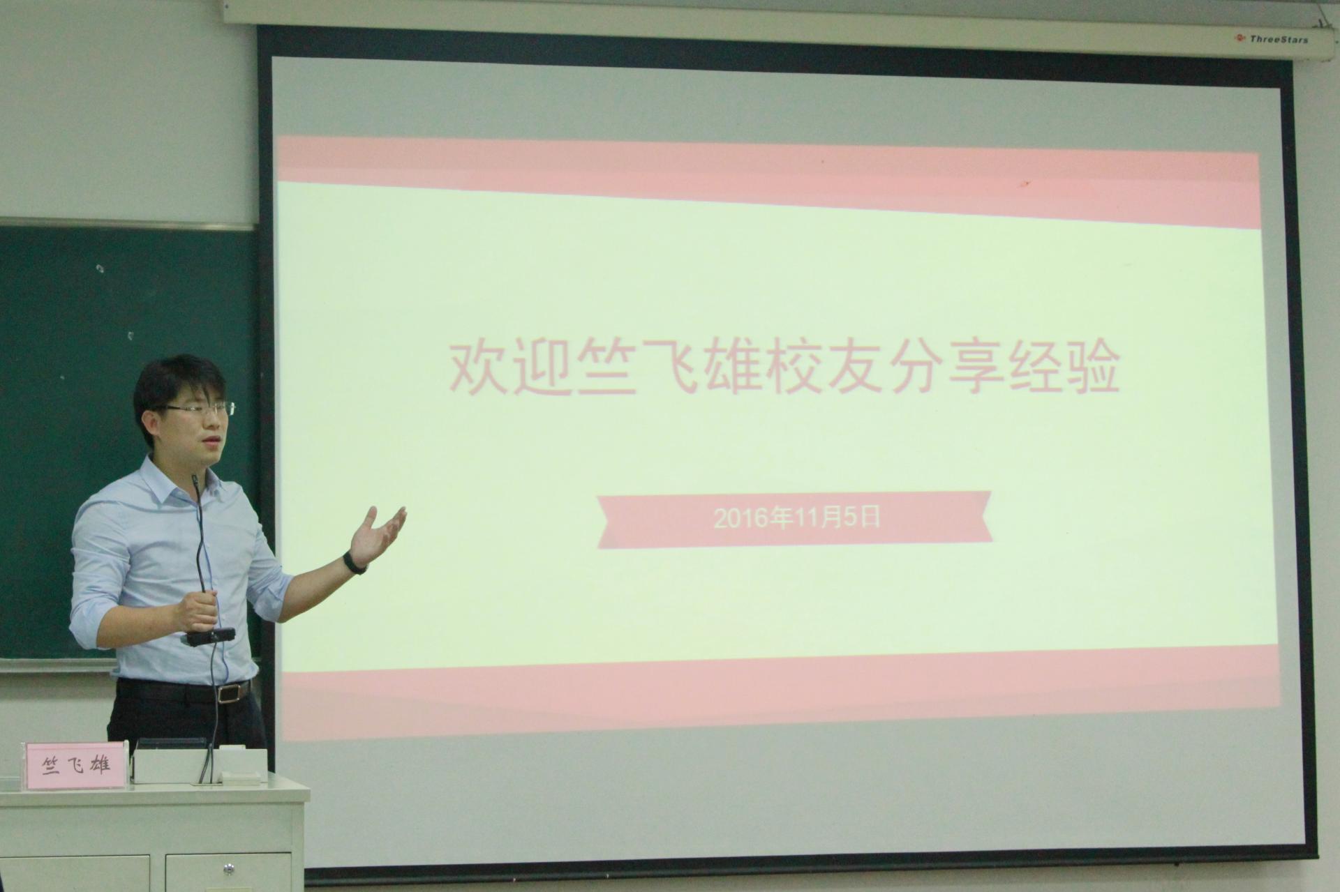 303教室举行,由学院党委书记朱丹老师主持,16级法学专业学生参加此次报告会。竺飞雄校友为p站视频