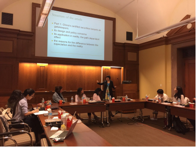 (University of Pennsylvania Law School)访问研究员在该校做了题为“The difficulties in understanding the role of lawyers in China’s securities market: from gatekeepers to private litigators”的学术报告,就我国证券律师的看门人与诉讼者角色与与会学者进行了交流与探讨。