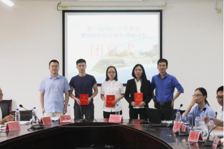 “钱江法学论坛”于2017年1月拉开帷幕,论坛以“网络侵权法律治理”为主题吸引了在杭各高研究生,论文集收录了浙江大学、杭州师范大学、浙江财经大学等在杭高校20多篇论文,以跨专业、多视角、跨区域等方面具体阐释“网络侵权法律治理”的理论分析和实践研究。经校外专家盲审,最终入围决赛答辩论文15篇。在现场答辩环节,各高校入围选手进行了精彩纷呈地论文PPT展示和汇报。经过激烈的角逐和现场评委专家的评定,浙江财经大学民商法专业的林雅晨、经济法学专业的刘栋荣获一等奖,杭州师范大学俞倩等四位同学荣获二等奖,浙江大学金超等六位同学荣获三等奖。