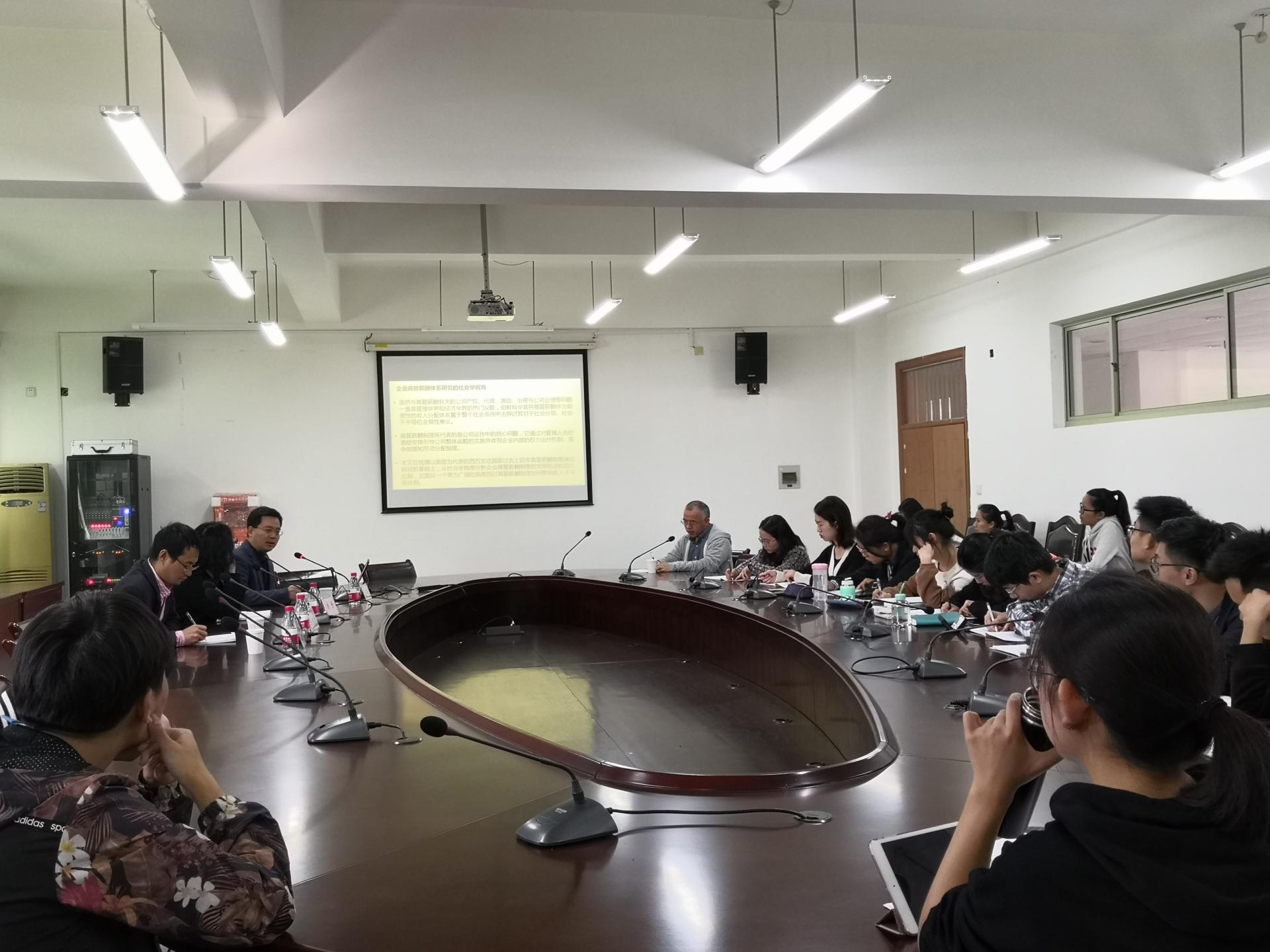 党委书记朱丹主持,陈建胜副教授、韩宗生博士、张文杰博士、陈佳俊博士及2018级法学专业研究生和部分社会工作系本科生等三十余人参加讲座。