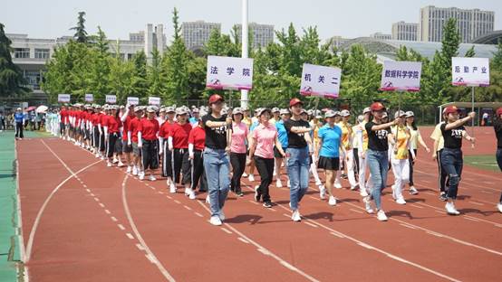 5月9日,浙江财经大学下沙校区西体育场上彩旗飘扬,运动员进行曲激昂嘹亮,来自各个学院的代表队精神抖擞、步伐整齐地步入会场,我校2019年第二十二届教职工健身运动会正式拉开序幕。