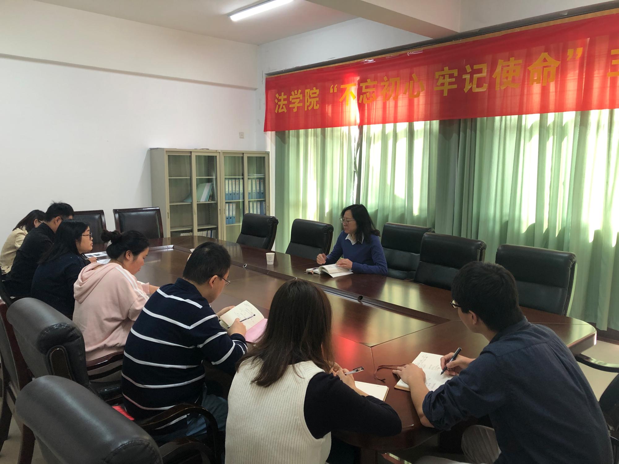 认真学习后,各党支部书记分享了学习感悟。法学教工党支部书记李森谈到通过此次学习加强,自己加强了对支部书记职责的了解,也深感作为一名支部书记使命重大,责任艰巨。社会工作教工党支部书记王婷分享了近期支部党员开展“社工学生专业认同提升”志愿服务的心得,认为在支部工作中找好落脚点与载体十分重要。行政教工党支部书记王文婷谈到支部工作中的一些具体困难,并表示加强理论学习对支部书记工作尤为关键。研究生党支部书记俞玲玲、本科生党支部书记姚秀芬、赵聪、王龙辉也结合学生支部工作的实际,谈到支部研本共建、志愿服务等工作中的一些心得体会,表示需借助支部书记培训、学习强国app自学、工作实操等提升支部书记工作责任感、加强业务能力提升。