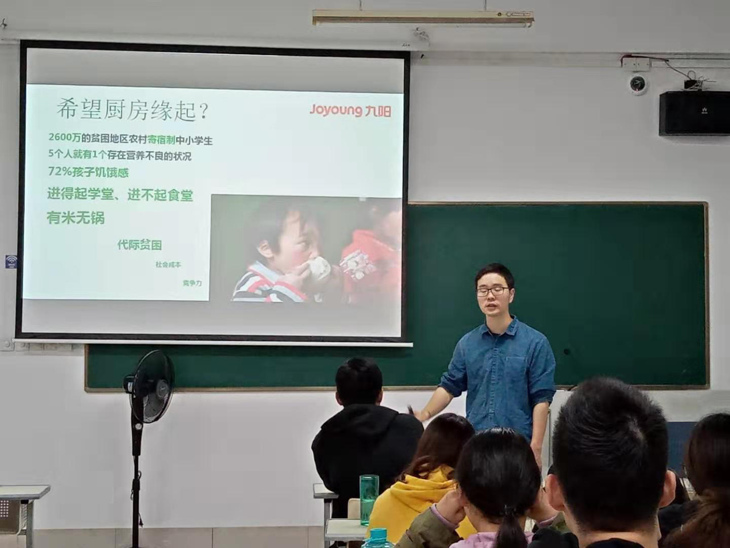 社会工作系特邀请九阳集团公益部负责人黄晖走进企业社会工作的课堂。他将生涩难懂的课本知识与九阳集团企业社会责任的具体履行方案相结合,给同学们分享一堂《九阳集团企业公益设计路径实践》,让课堂变得生动有趣。与此同时,同学们也在课堂中身临其境般的真正体验到企业社会工作的实际落地情况,收获颇丰。