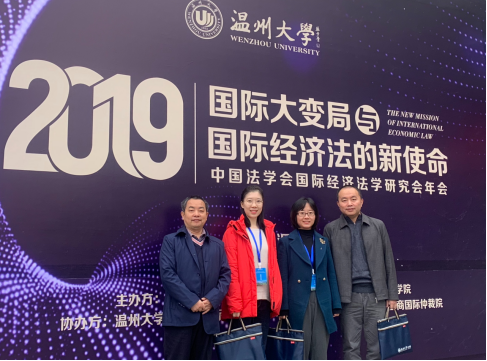 11月30日,中国法学会国际经济法学研究会2019年会暨“国际大变局与国际经济法的新使命”研讨会在温州大学召开。我校国际法系刘勇、张蹇、褚童、马旭霞四位老师参加会议,与来自全国的专家学者进行了广泛的交流。张蹇、褚童、马旭霞老师分别作了题为 “WTO视阈下的中国文化‘走出去’税收优惠措施研究 ”、“巨型自由贸易协定的知识产权规则分析与中国应对方案”、“判理法视野下平行进口中商标侵权认定的比较研究”的报告发言,同与会学者一道就相关问题进行了热烈而富有成效的探讨。