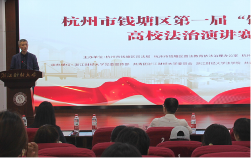 11月12日,由钱塘区司法局、区普法教育依法治理办公室、区法学会主办,浙江财经大学承办的钱塘区第一届“钱潮杯”高校法治演讲赛在我校下沙校区举行。杭州市司法局普法与法治社会建设处处长王海华、杭州市钱塘区委政法委委员、区司法局副局长胡瑾、杭州市钱塘区人民法院司法保障服务中心副主任高源、杭州职业技术学院办公室副主任、副教授陶启付、p站视频