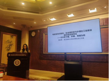 社工系聂玉梅副教授参加了大会,并参加了分论坛“社会政策与社会工作实践研究”,在分论坛以《专业性与行政化:社会组织参与乡镇社工站建设的行动及其异化》为主题进行了分享,对社会组织参与社工站建设的行动及其异化表现进行了精彩发言。
