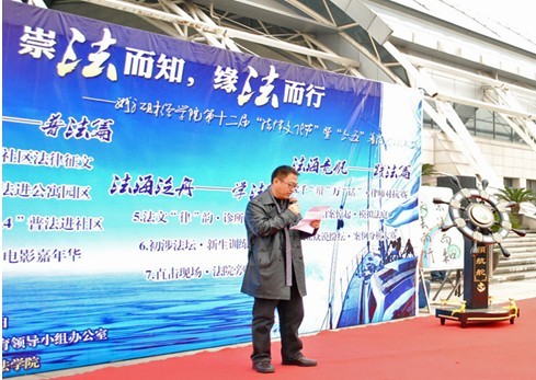 根据省委、省政府颁发的《关于在全省公民中开展法制宣传教育的第六个五年规划(2011-2015年)》文件精神,结合我校实际,学校制定印发了《浙江财经学院法制宣传教育第六个五年规划(2011-2015年)》,规划明确了我校“六五”普法工作的指导思想和主要目标任务,提出通过开展形式多样的法制宣传教育,不断提高广大师生员工的法律意识和素质,形成人人学法知法守法用法的良好环境,开创法治文化建设与依法治校工作新局面。围绕学校“六五”普法规划,本次“法律文化节”活动分为普法、学法、践法三个篇章,共十项活动,弘扬法治文化、助推和谐发展,进一步营造普法宣传教育的良好氛围。仪式上,p站视频