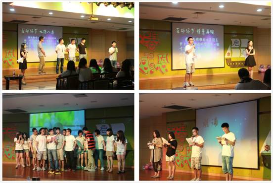 激情四射的开场舞,拉开了此次茶话会的帷幕。接着,是由大一学生费腾和郭天浩带来的双簧表演。他们以其幽默的语言,夸张的演技,引得台下观众欢笑不断,掌声阵阵。之后,素有“女神”之称的大四学生腾佳慧带来了一段动感的独舞,给同学们带来了一场视觉盛宴。随后,毕业生们一起观看了由2014届社工班班长精心制作的大学四年回忆视频。观看过程中毕业生们一起细数了大学四年的欢笑泪水,喜悦悲伤,点点滴滴重现在他们的脑海。伴着《祝你一路顺风》的歌声,毕业生们从回忆中渐渐走出。不得不说的是,茶话会过程中,三个有趣的小游戏有效的活跃了现场的气氛,让茶话会在愉快地气氛中进行着。