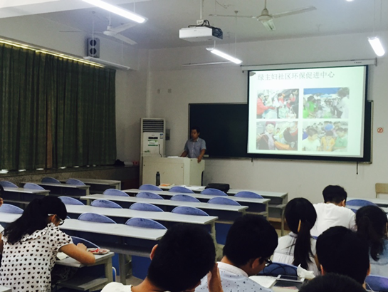 社会工作实践教育基地“基地精英进课堂”活动。2013级社会工作班学生聆听了讲座并参与了互动,活动由《非政府组织管理》课程任课教师童志锋副教授主持。